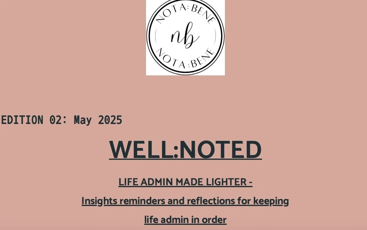 Edition 02 of our newsletter WELL:NOTED with insights, reminders and reflections on keeping life admin in order.